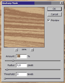 Далее применяем Unsharp Mask 2 раза и вырезаем нужный кусочек дощечки: